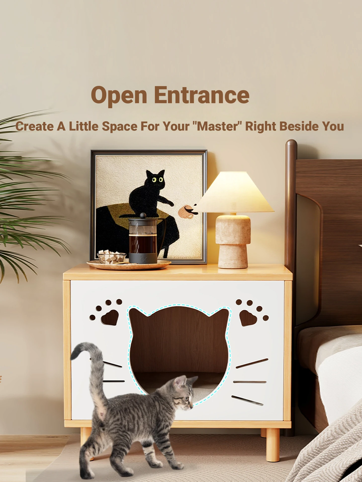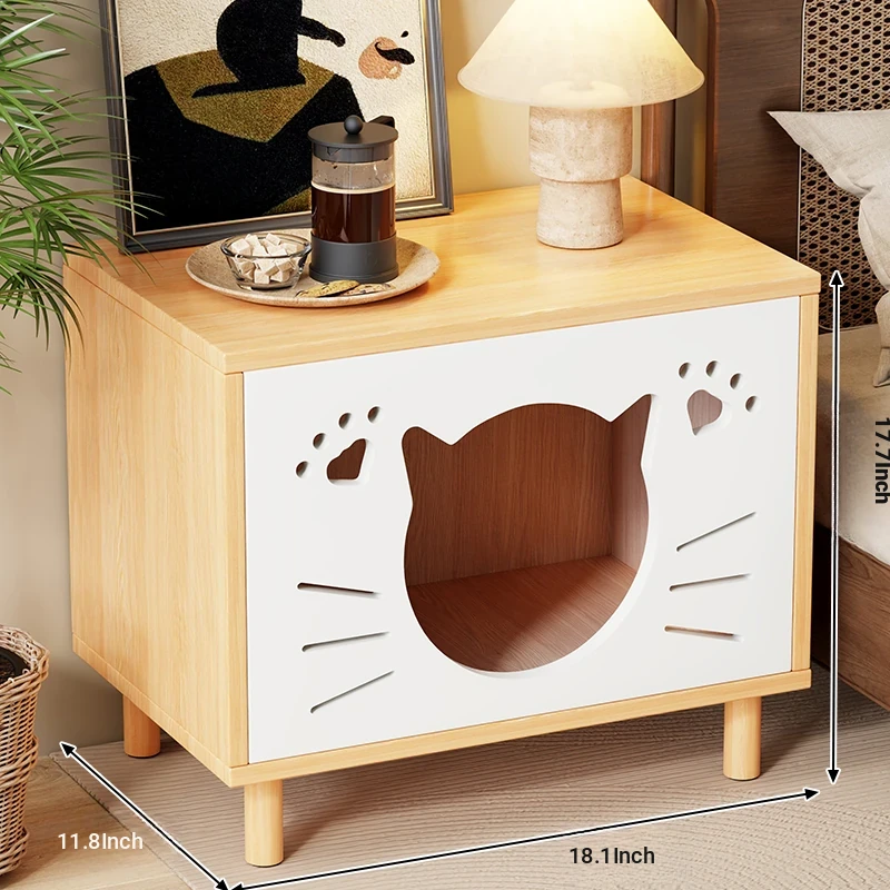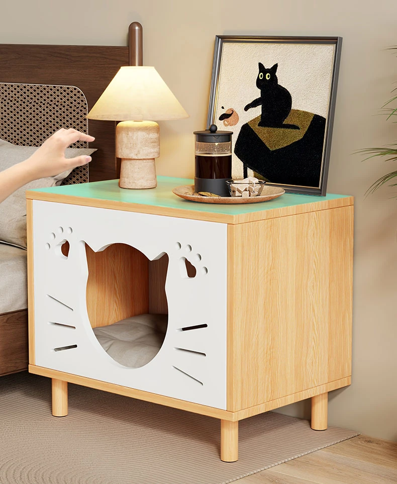 Creative Minimalist Cat Bedside Cabinet - Stylish Cat House Storage Rack for Home & Bedroom, Perfect Small Nightstand for Your Feline Friend.