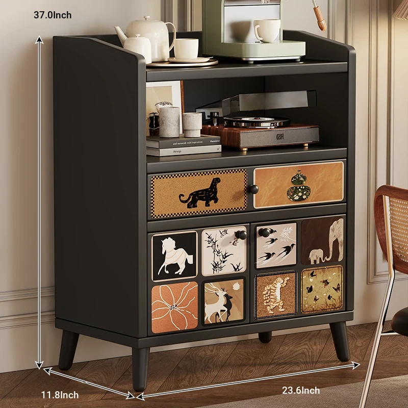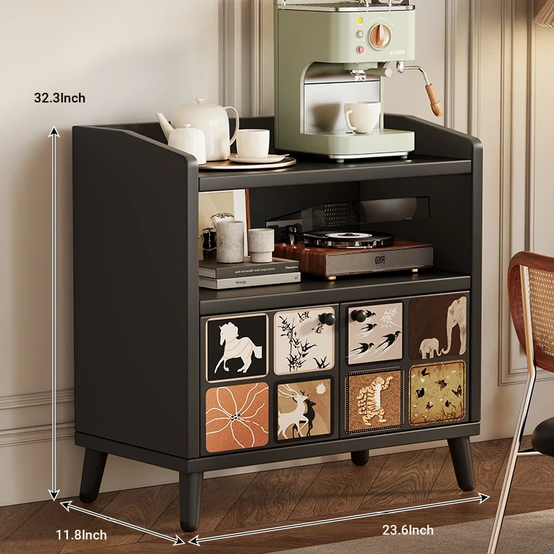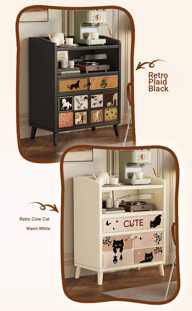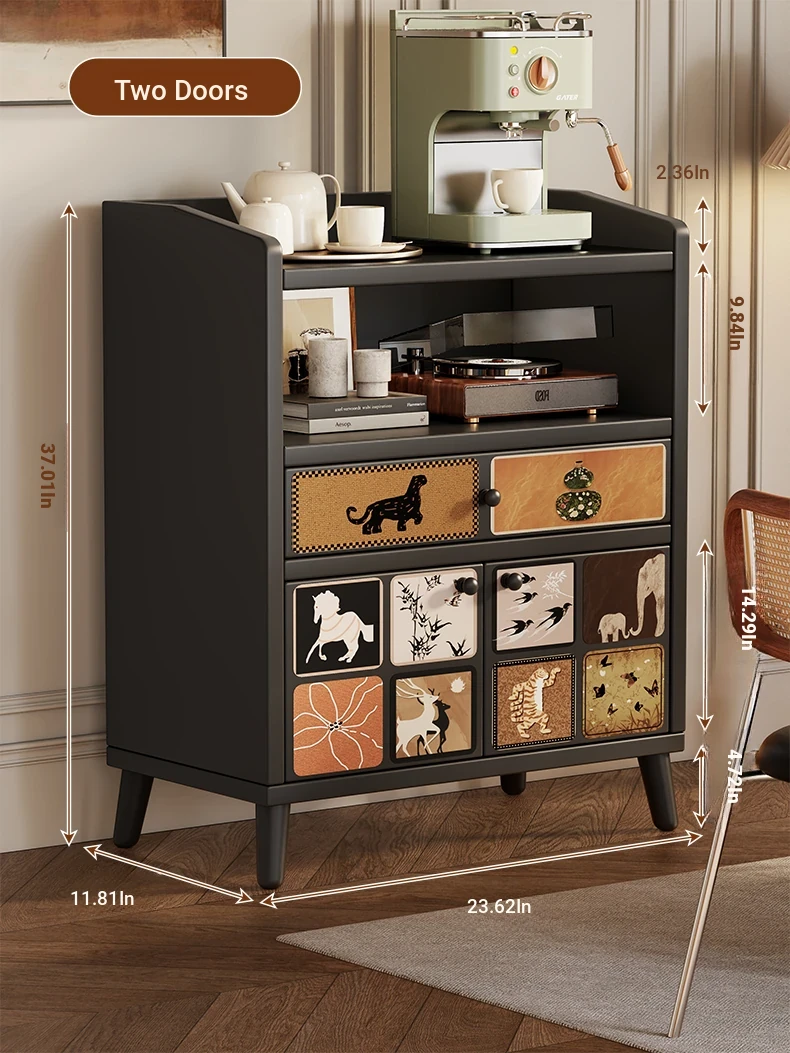 Retro Charm⭐Black [Two Doors, One Drawer]