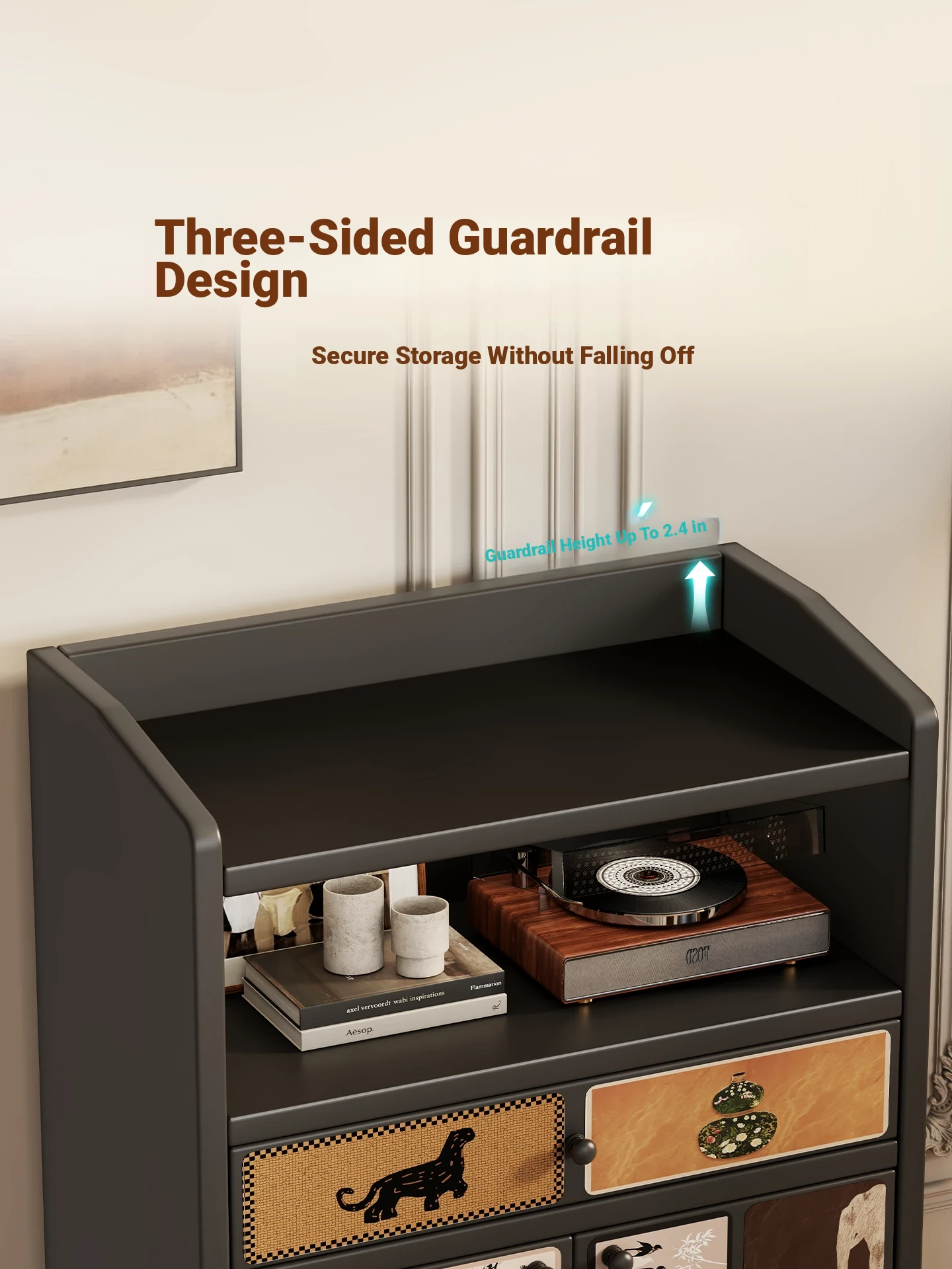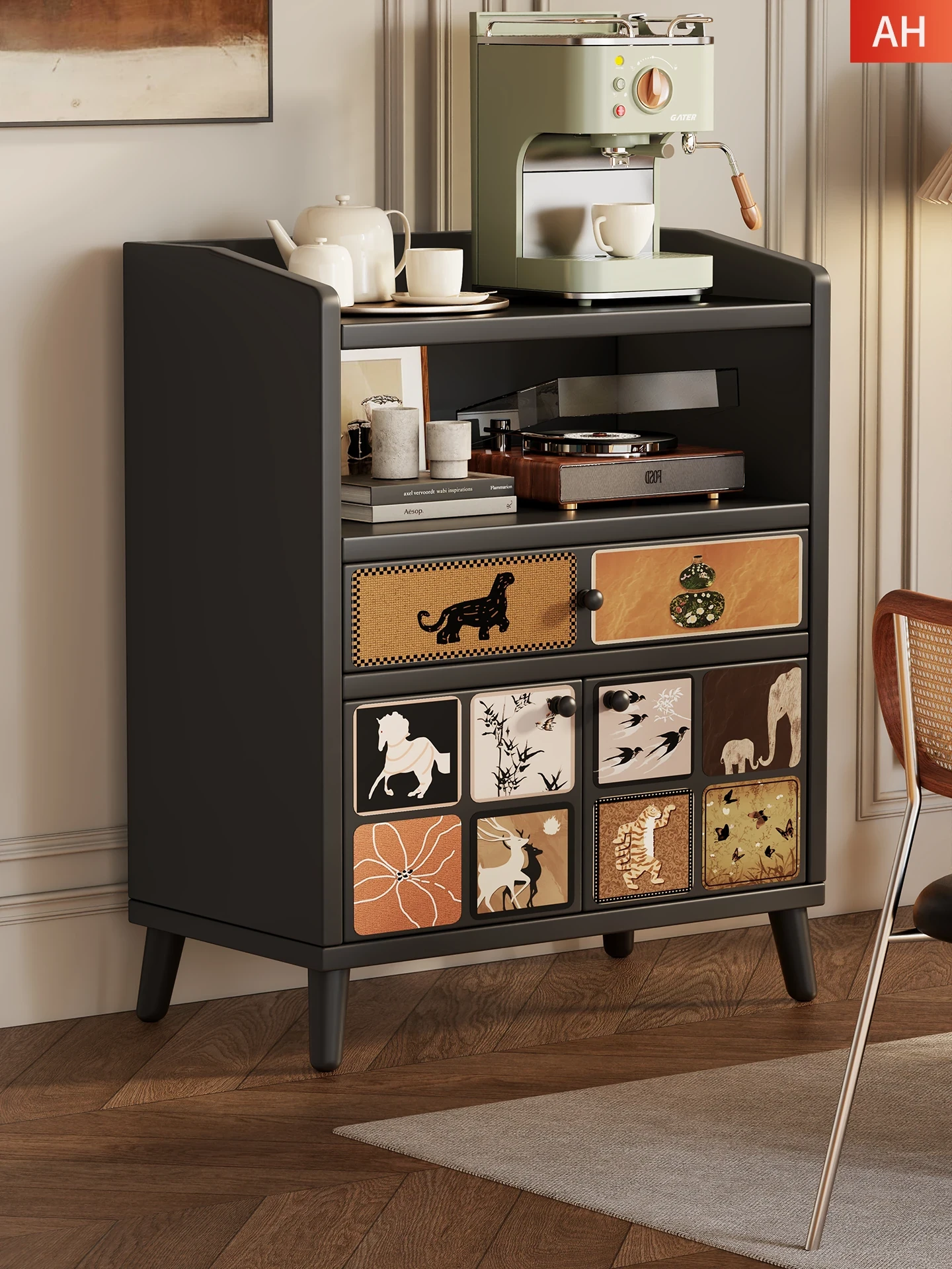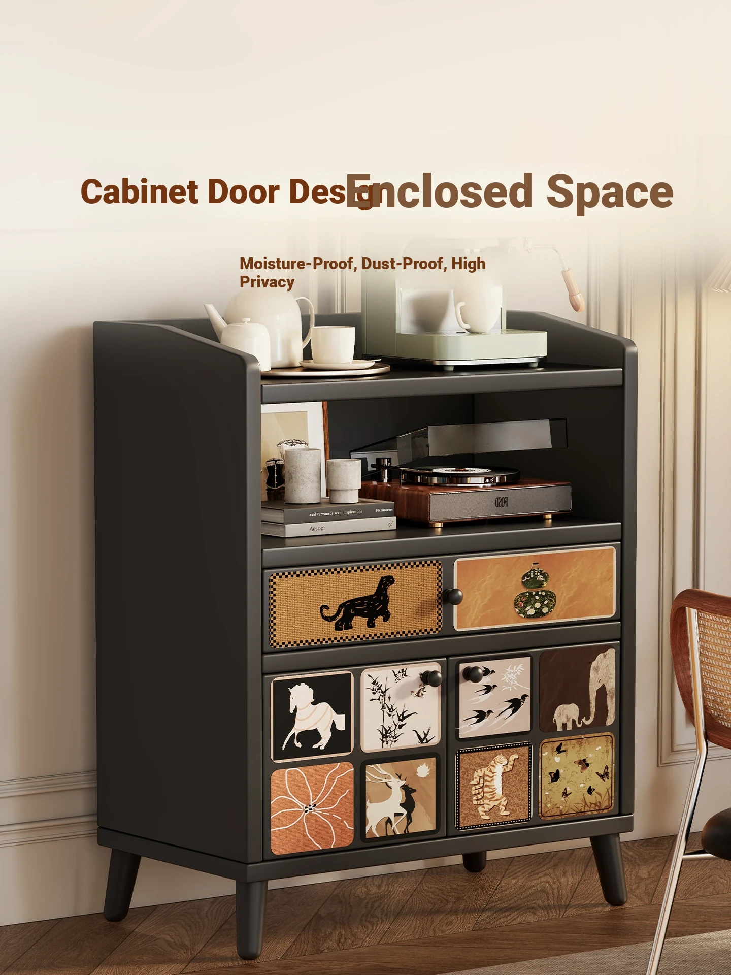 Retro Charm⭐Black [Two Doors, One Drawer]