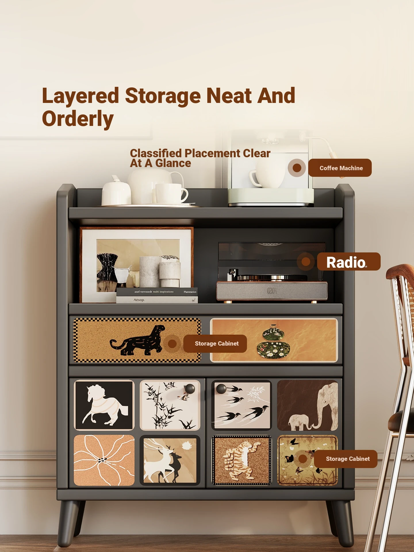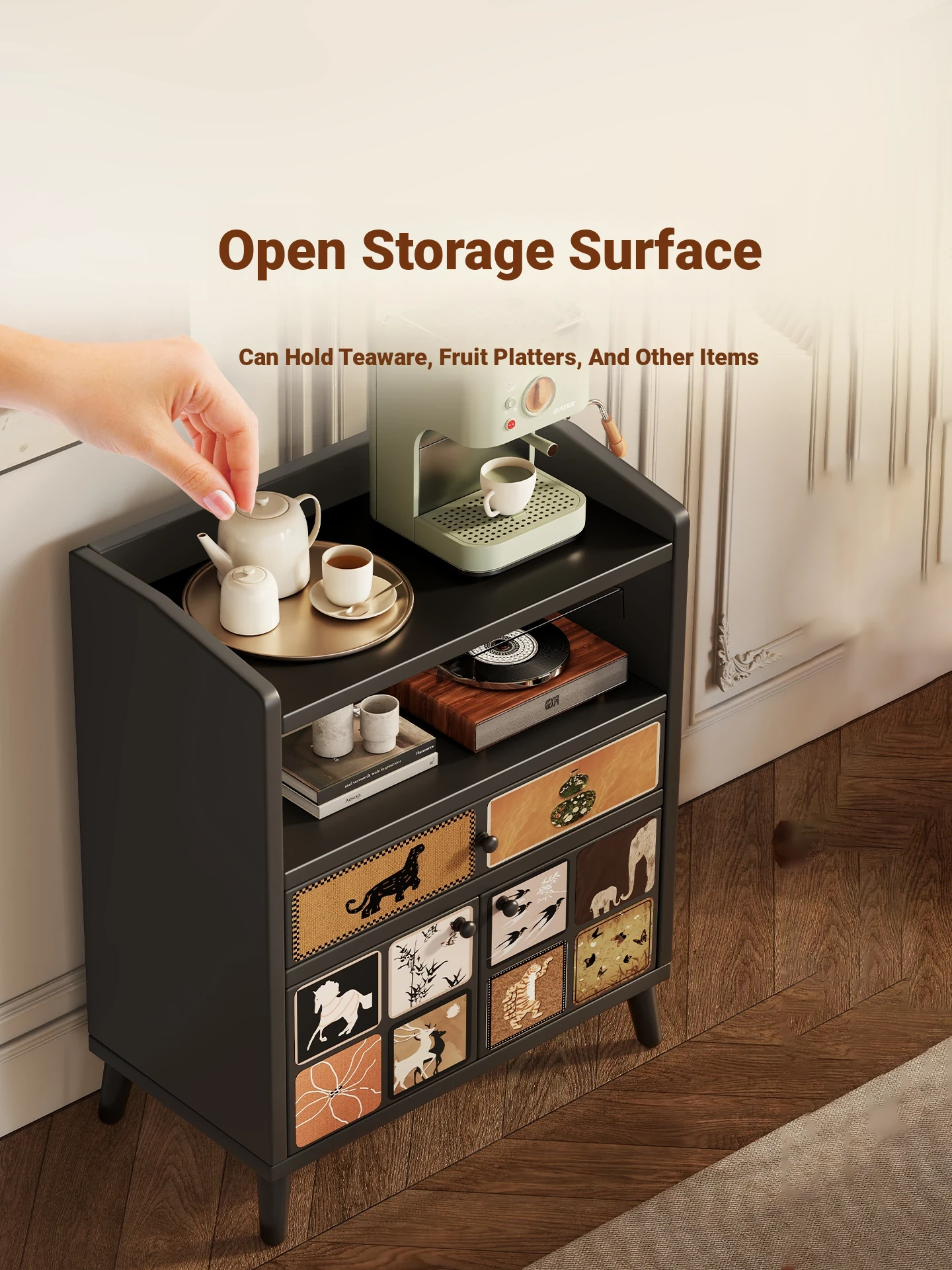 Stylish Wall-Mounted Sideboard Storage Cabinet - Multi-Functional Organizer for Entryway, Living Room, and Kitchen - Perfect for Tea and Beverage Storage