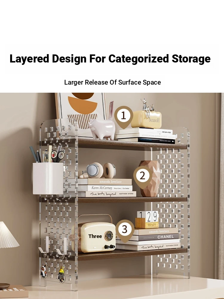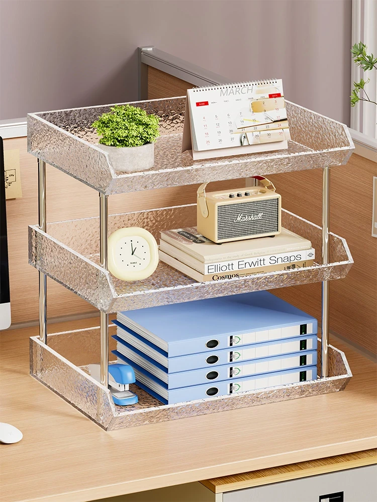 Multi-Layer Acrylic Desk Organizer - Stylish Storage Rack for Office Desks, Perfect for A4 Paper and Document Files, Keep Your Workspace Tidy and Efficient!