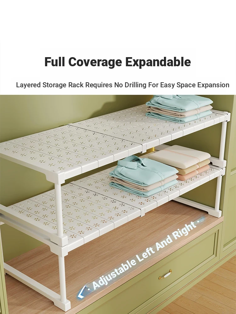 Expandable Closet Shelf Organizer - Multi-Layer Storage Rack for Wardrobes, Shoe Cabinets, and Home Use - Stackable Partition Shelves for Efficient Space Management