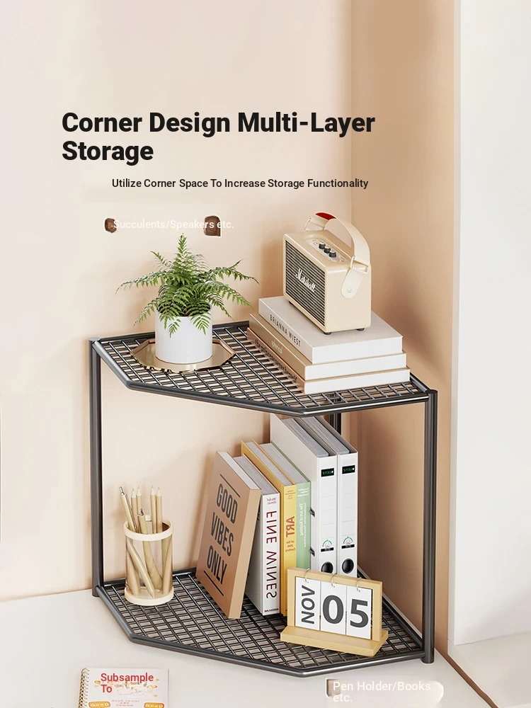 Corner Storage Shelf - Triangular Multi-Layer Bookshelf for Dorm Room, Stylish Desktop Organizer, Fan-Shaped Makeup Storage Rack for Office Use