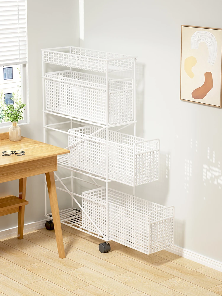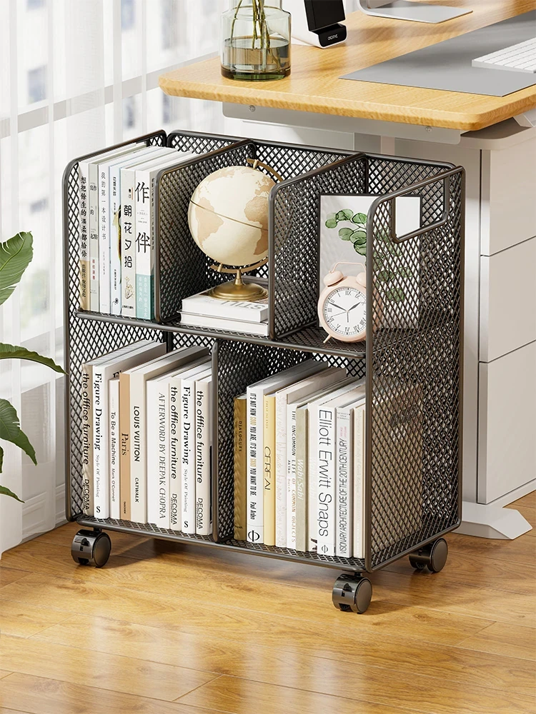 Multi-Layer Rolling Storage Rack - Versatile Iron Bookshelf for Living Room & Study, Perfect for Tight Spaces & Kids' Rooms, Easy to Move and Organize!