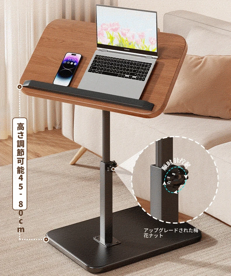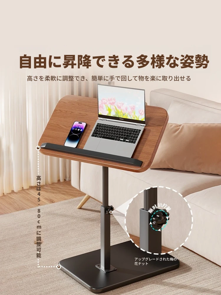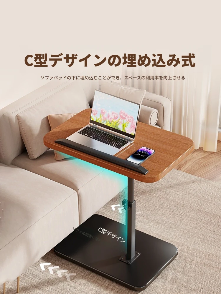 昇降式ソファサイドテーブル|現代的なリビングにぴったり!小型のティーテーブル、寝室やベッドサイド、フリップ式のデスクとしても活躍!バルコニーにも最適なシンプルなデザイン。