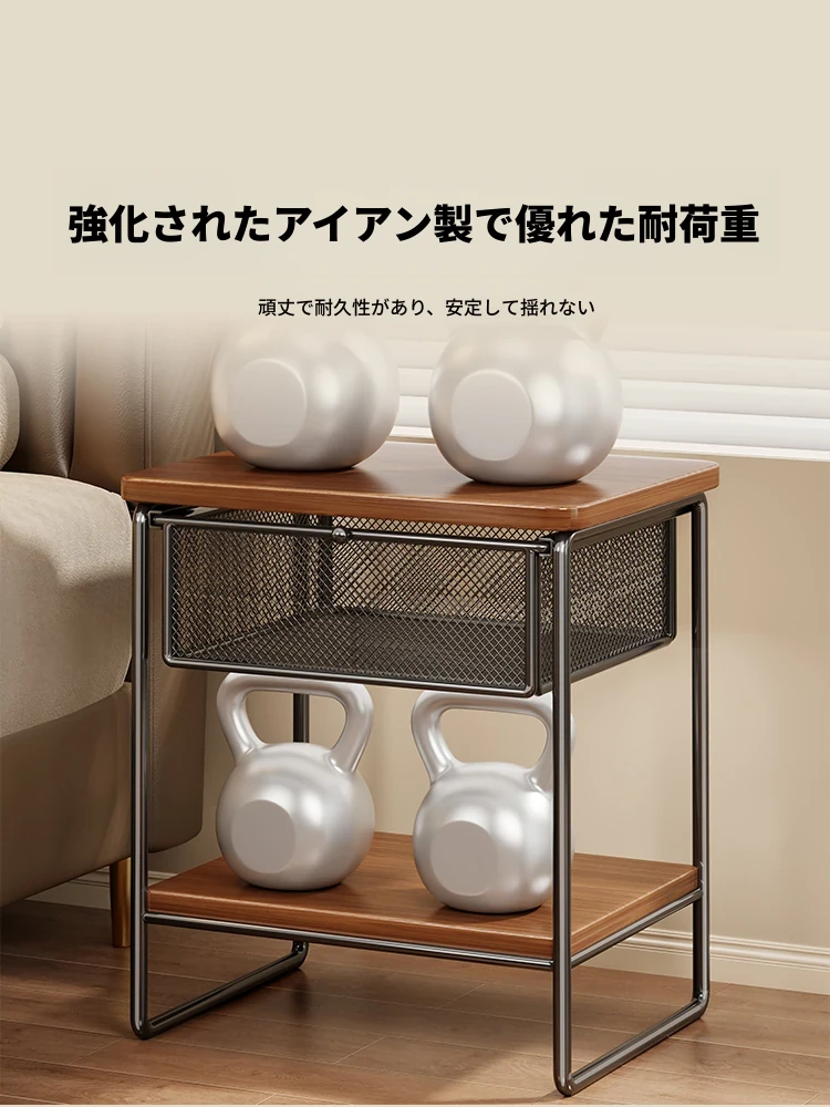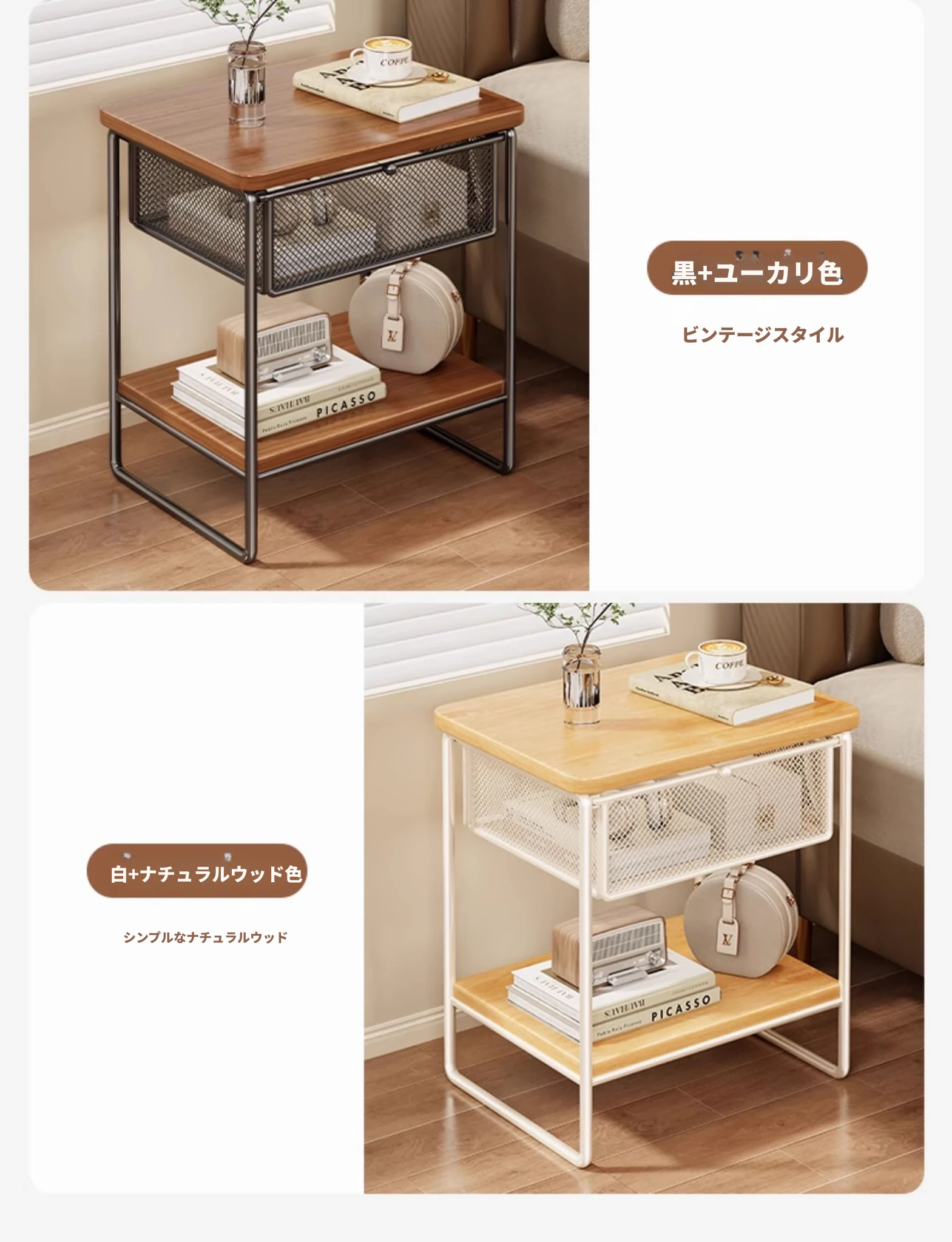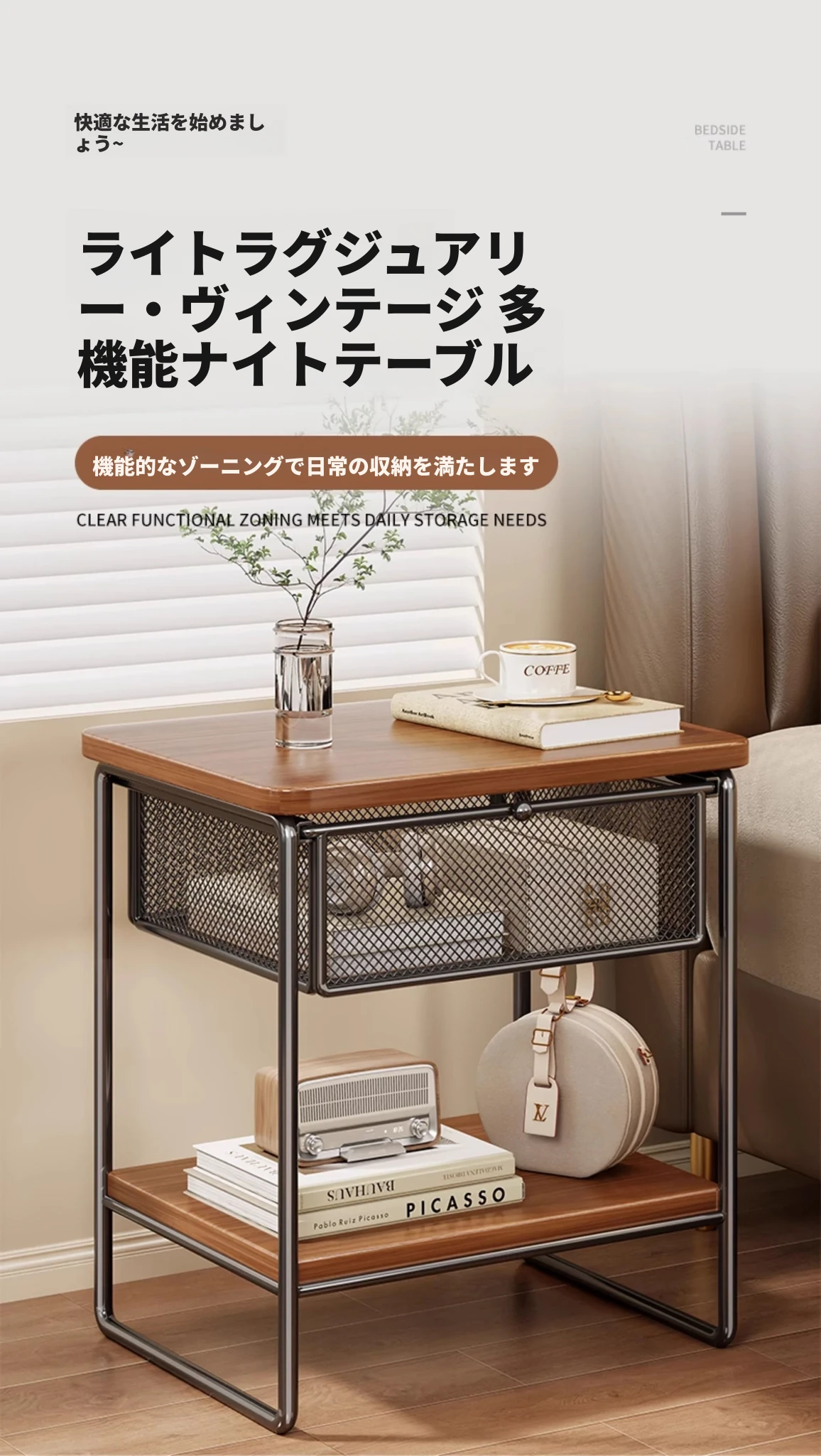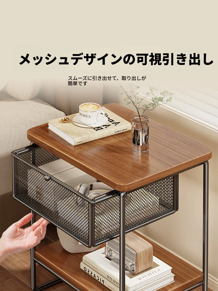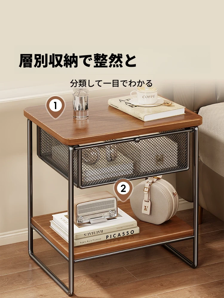 高級感溢れるベッドサイドキャビネット - 引き出し付き、収納力抜群の多層設計。シンプルでスタイリッシュな寝室用収納ラック、コンパクトサイズでスペースを有効活用!