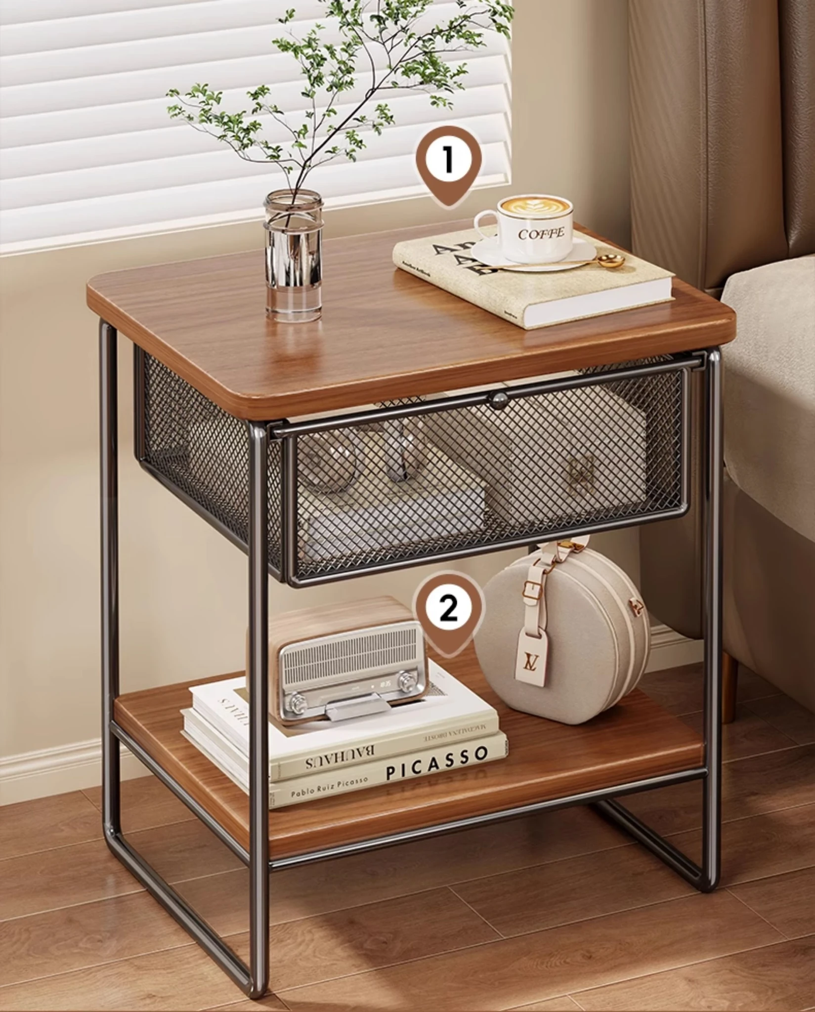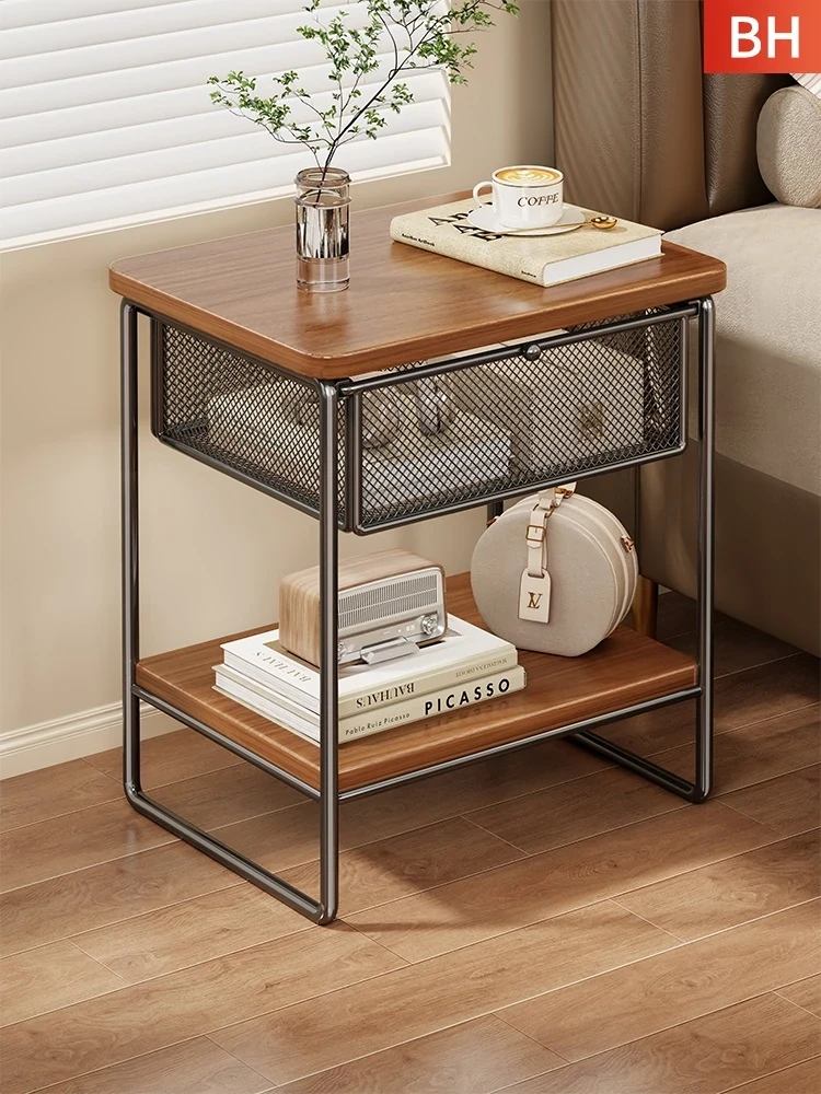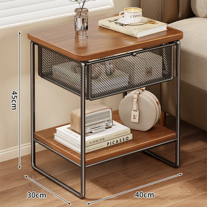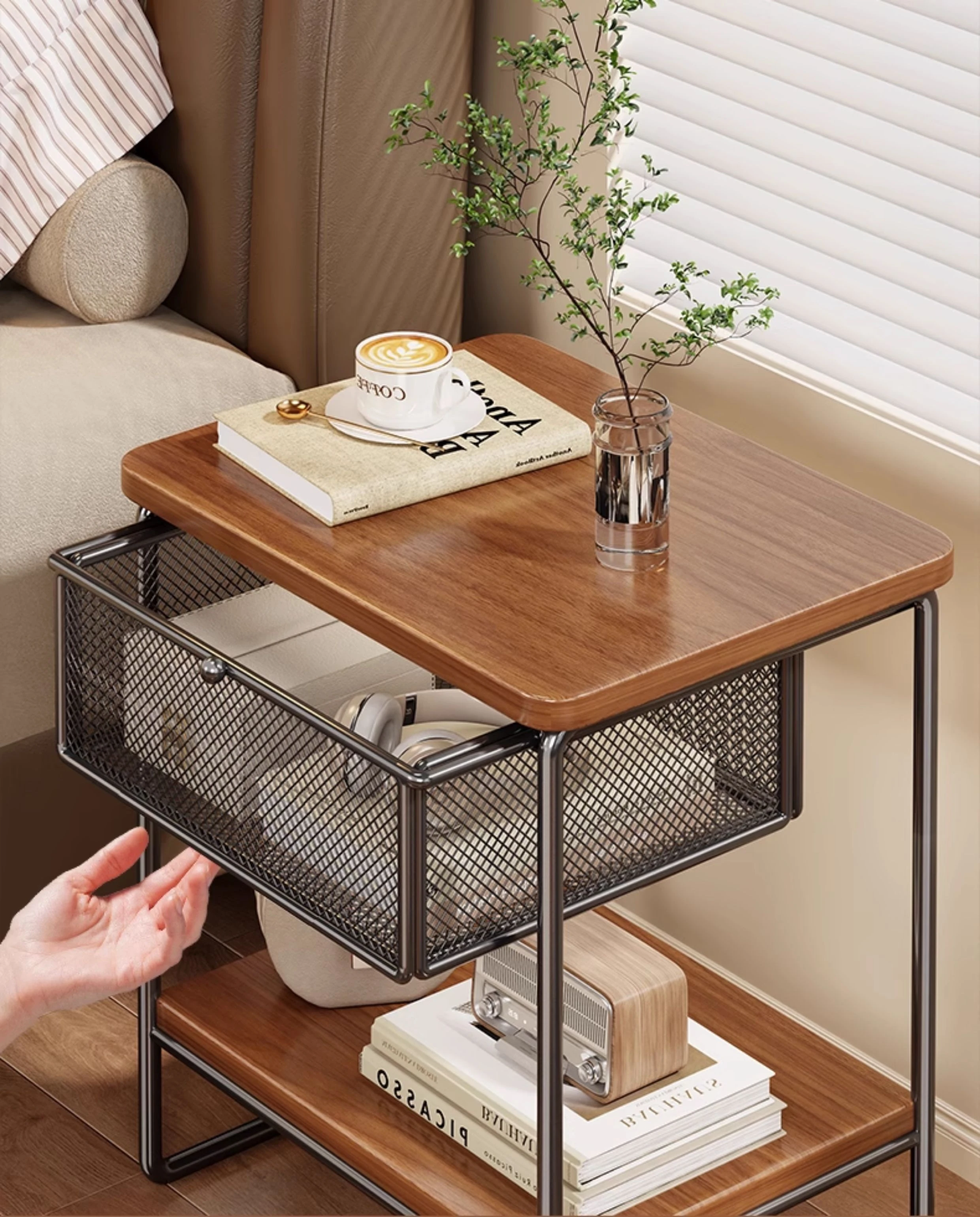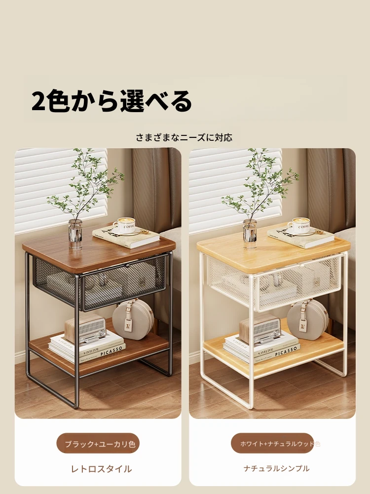 高級感溢れるベッドサイドキャビネット - 引き出し付き、収納力抜群の多層設計。シンプルでスタイリッシュな寝室用収納ラック、コンパクトサイズでスペースを有効活用!
