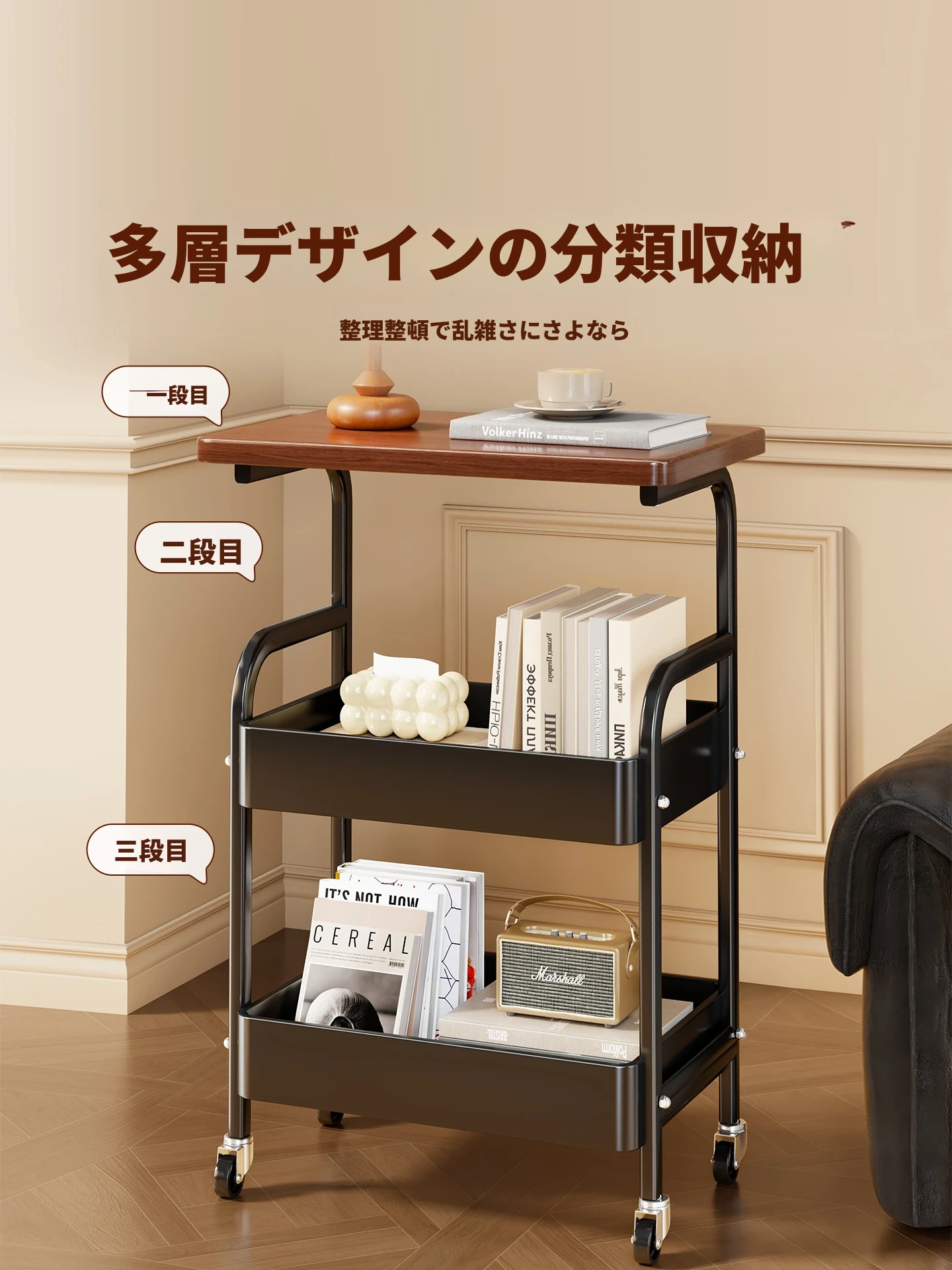 移動式多機能スナックラック!リビング、ソファの横、寝室のベッドサイドにぴったり!おしゃれで便利な収納スペース、あなたの生活をもっと快適に!