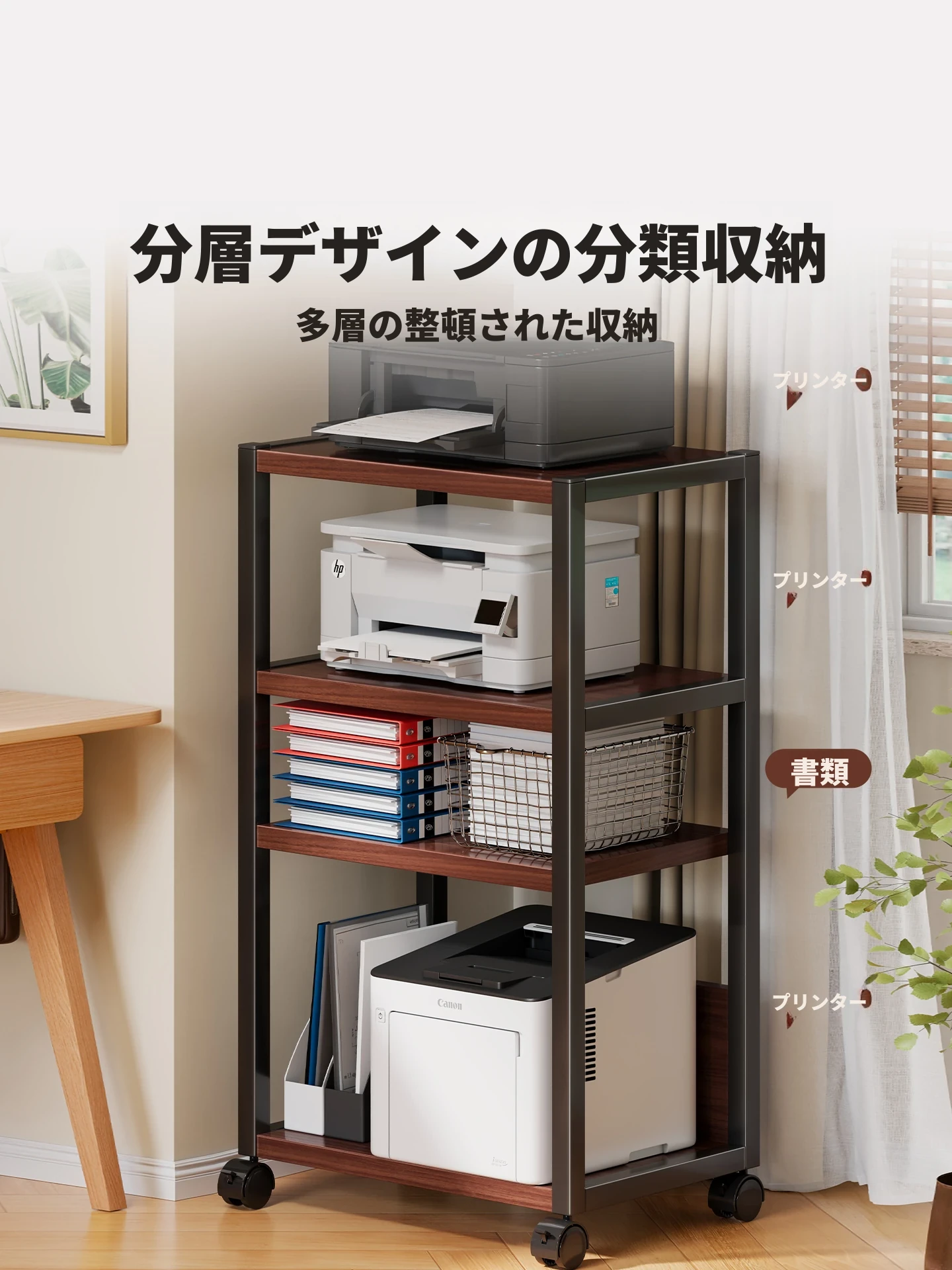オフィス用プリンタースタンド 移動可能な収納棚 デスク下の多段式キャビネット 書籍や文具を整理整頓!スッキリとしたデスク環境を実現する便利なキャスター付きラック