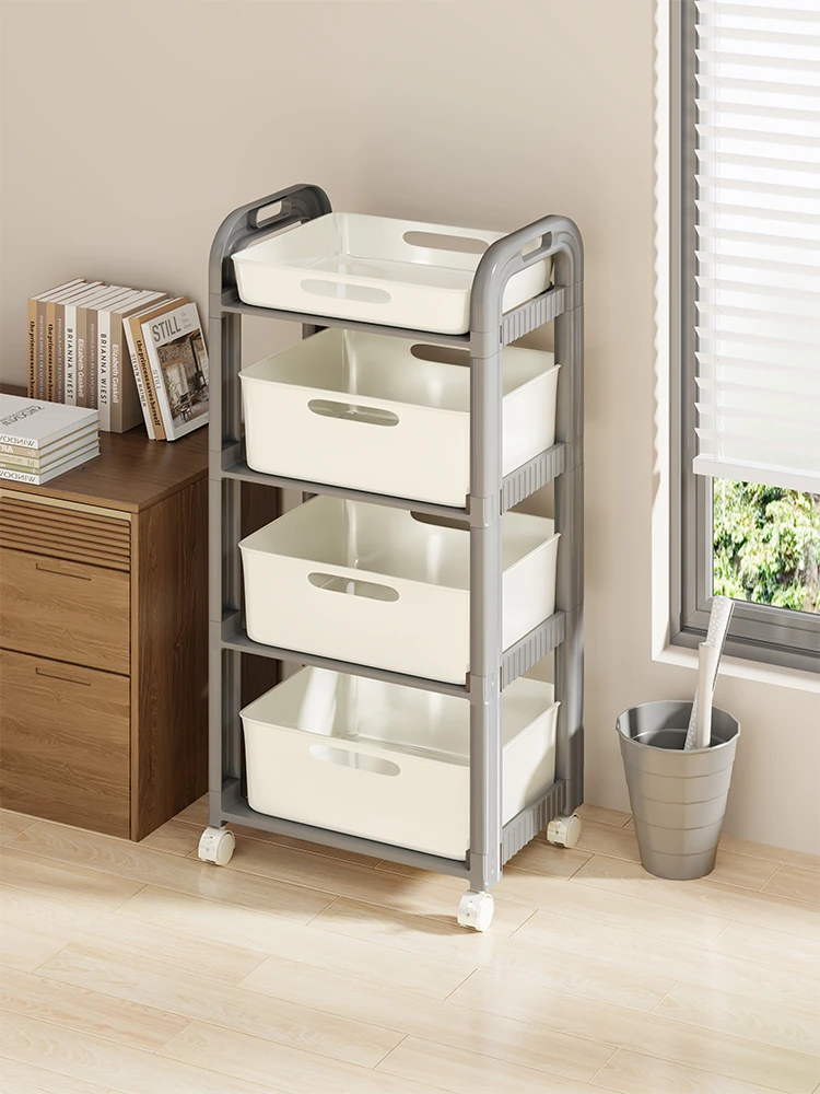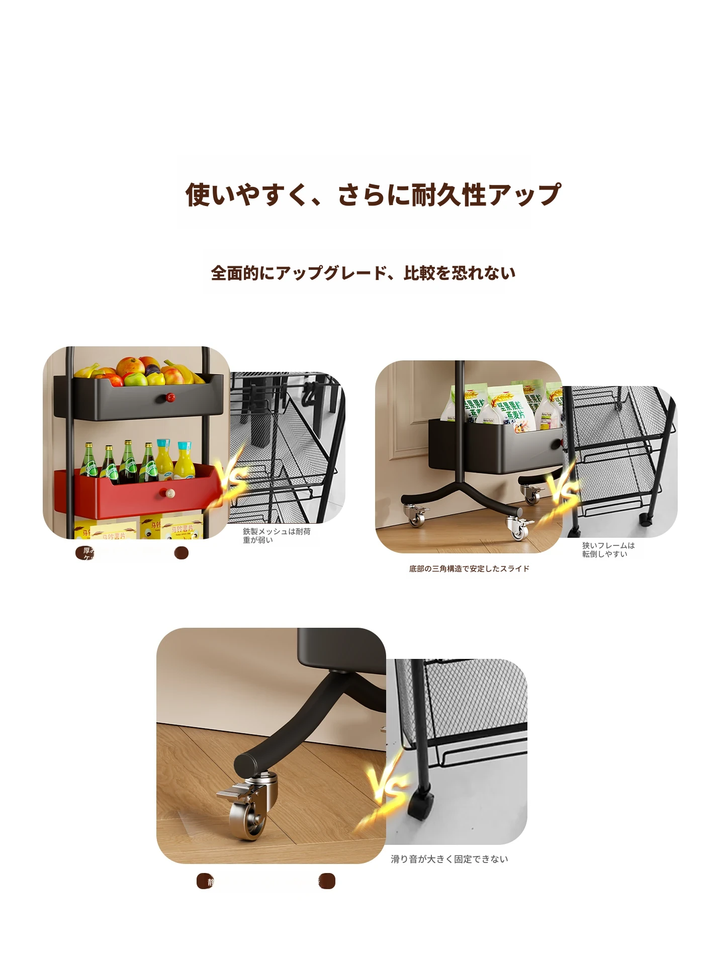 リビングに最適!移動可能なスナック収納ラック - 多層設計のキャスター付き小型カートで、キッチンや果物の整理に最適な収納棚!便利でスタイリッシュなインテリアを実現します。