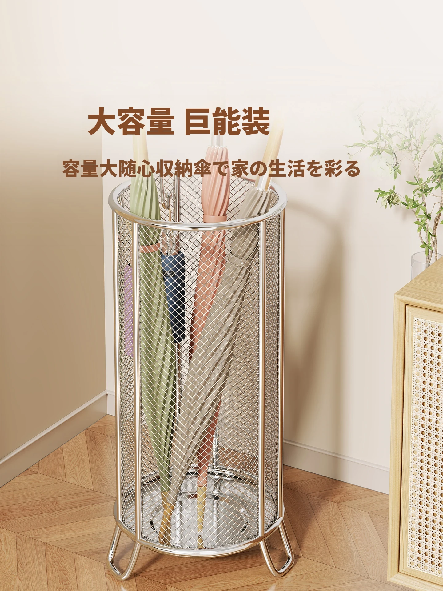 家庭用傘立て - 雨の日も安心!玄関にぴったりの傘収納スタンド。商業用にも最適な雨傘桶付き、便利な水切り機能で衛生的。多機能収納ラックでおしゃれに整理整頓!