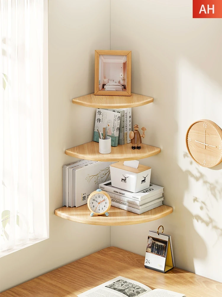 天然木材使用の実木コーナーシェルフ!三角形のデザインで、壁に取り付けるだけでお部屋をおしゃれに演出。頑丈なゴムの木製で、収納力抜群!スペースを有効活用して、あなたの空間を美しく整えましょう。