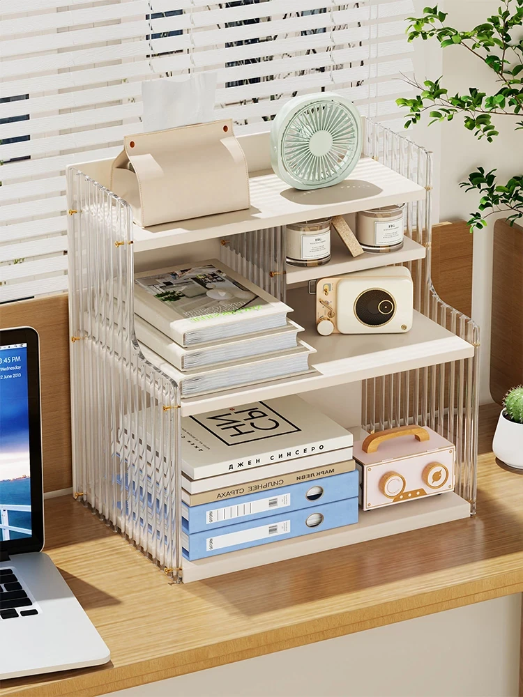 オフィスデスク用アクリル収納ラック - 学生や子供にも最適な多層簡易ミニブックシェルフ。おしゃれでコンパクト、デスク周りをスッキリ整理整頓!仕事や勉強の効率をアップさせる必需品です。