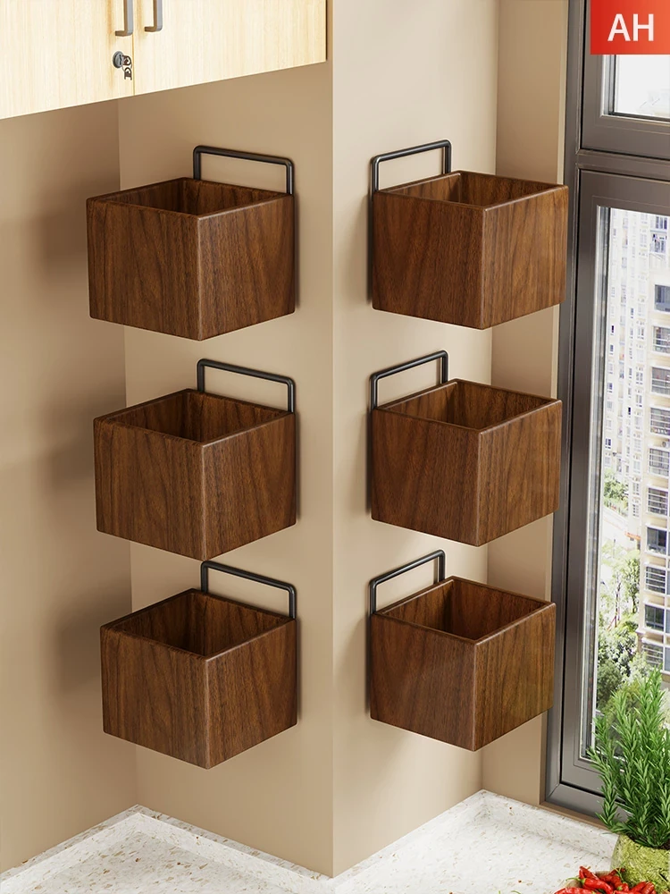 天然木製のネギ・生姜・ニンニク収納ボックス|キッチンに最適な壁掛け調味料収納ラック|便利なハンギングバスケットで調理をもっと楽しく!