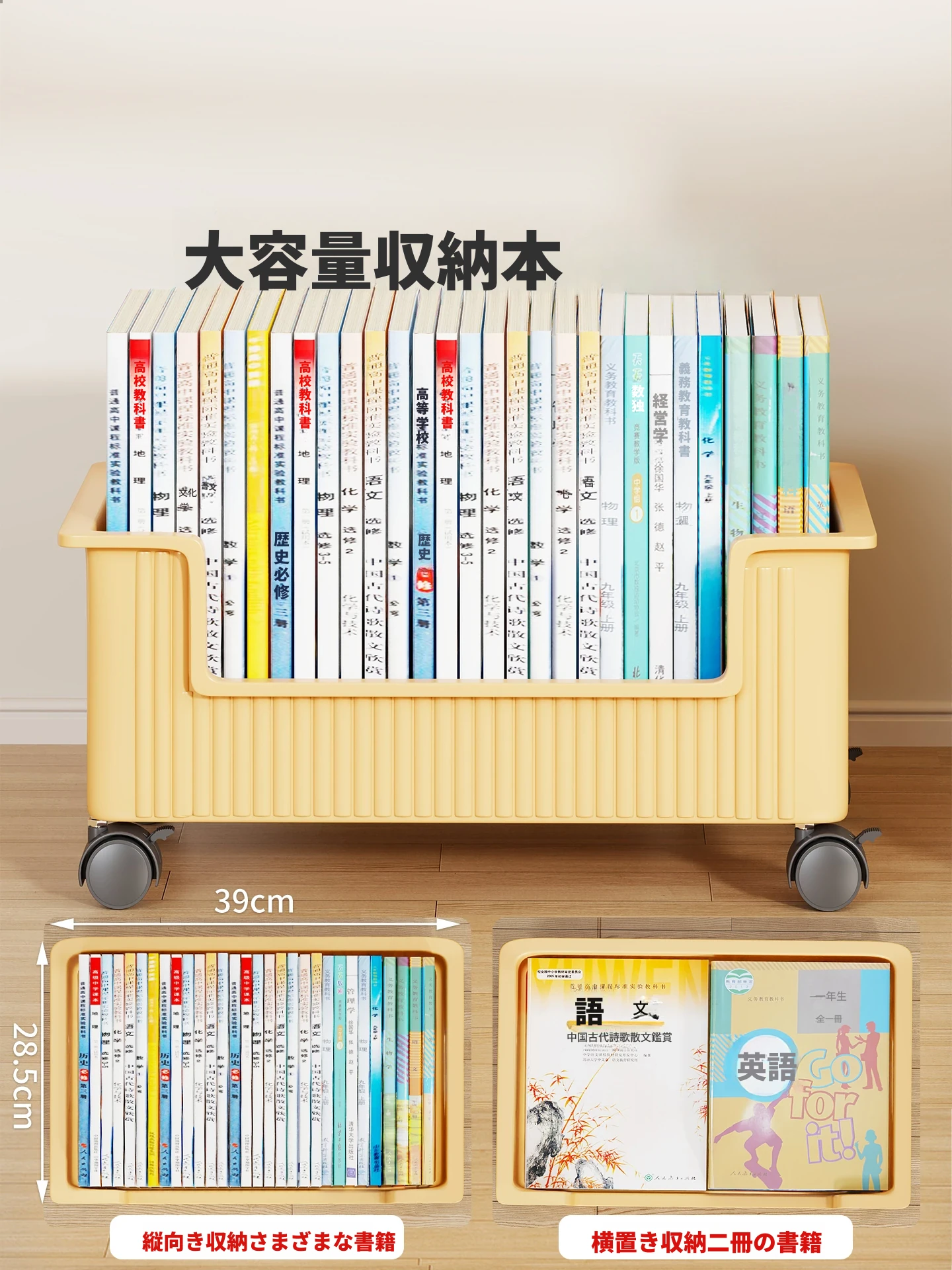 学生必見!デスク下にぴったりの移動式書籍収納ラック - ローラー付きの便利な小型カートで、教科書やノートもすっきり整理!勉強の効率UP間違いなし!