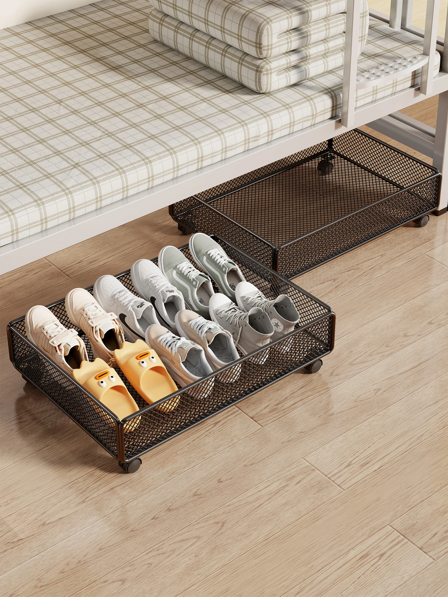 ベッド下収納シューズラック - シンプルでキャスター付き、靴をすっきり整理!お部屋を広く使える省スペース設計、簡単に移動できる便利なシューズボックス。寮や家庭に最適!