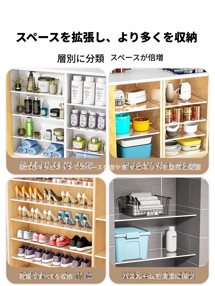 アクリル製収納ラック・クローゼット用仕切り棚・透明な収納スペースを実現!おしゃれでシンプルなデザイン、キッチンやクローゼットにぴったりの透明棚。整理整頓をサポートし、使いやすさ抜群!