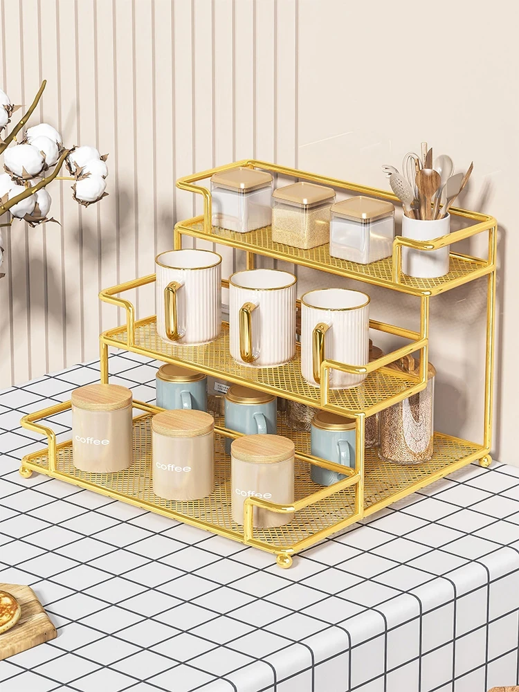 テーブル上の収納ラック|水杯やお菓子をスマートに整理!リビングや茶の間に最適な多層調味料ラックで、スッキリとした空間を実現!