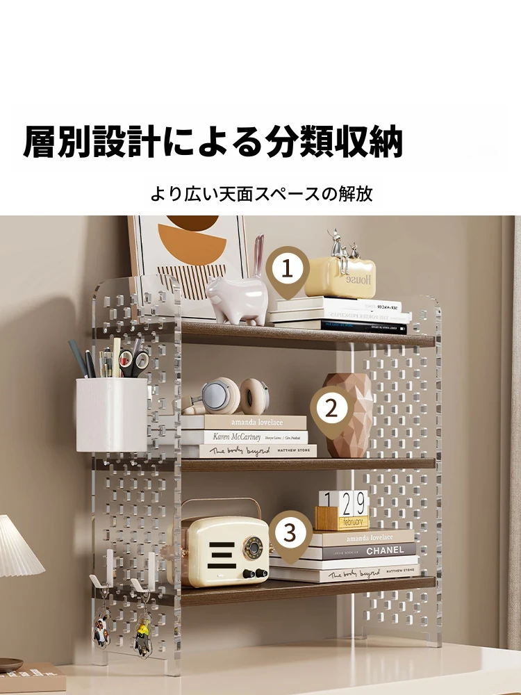 デスク上の多層収納!アクリル製A4用書類整理ラック - オフィスの必需品、すっきりとしたデスク環境を実現!書類や小物を美しく整理整頓し、作業効率をアップさせましょう!
