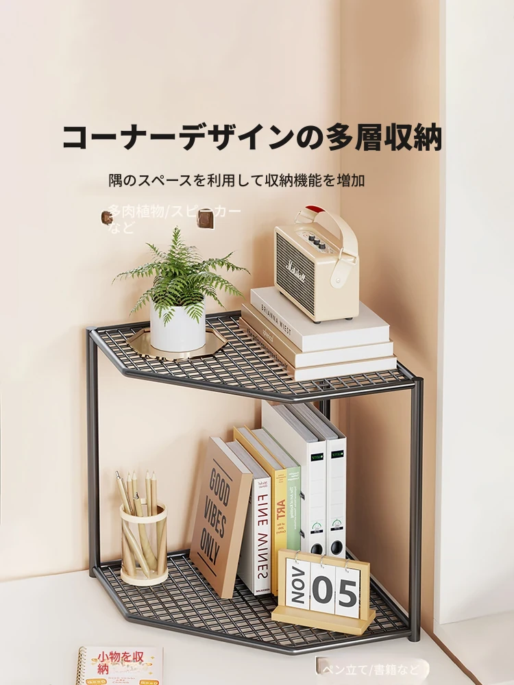 三角形多層コーナーシェルフ|デスク上のスペースを有効活用!|寮生活やオフィスに最適な化粧品収納&書籍ラック|おしゃれで実用的なアイテム!