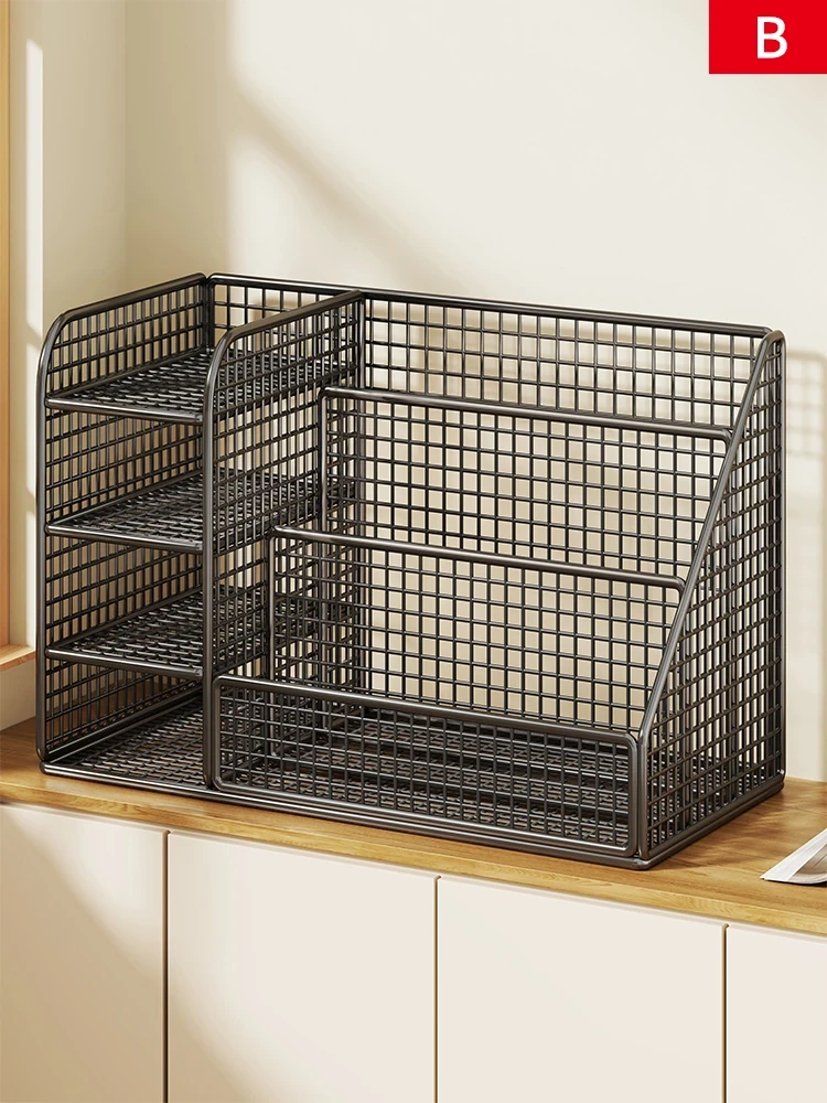 デスク用多層収納ラック|スタイリッシュなデザインで書類や本をスマートに整理!オフィスや自宅のデスク周りをスッキリと整え、作業効率アップ!