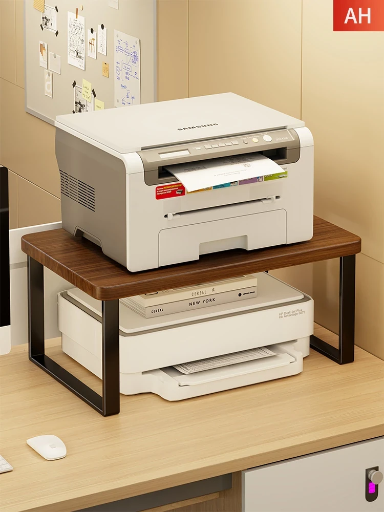 Solid Wood Desktop Bookshelf Printer Stand - Elevated Computer Desk Organizer for Easy Office Storage and Enhanced Workspace Efficiency