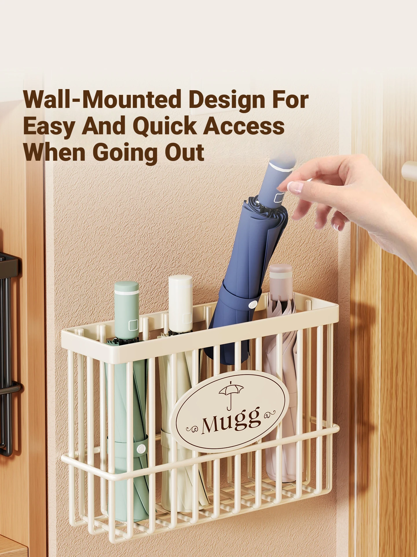 Magnetic Umbrella Storage Rack – Space-Saving Wall-Mounted Organizer for Home Entryway, Perfect for Narrow Spaces Behind Doors. Keep Your Umbrellas Neat and Accessible!