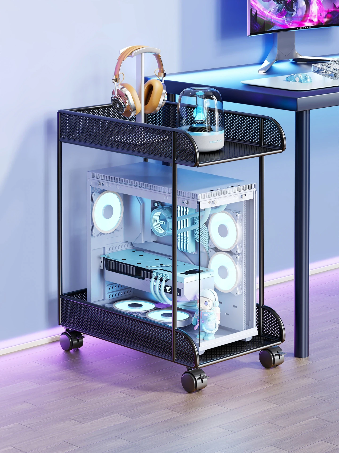 Mobile Gaming PC Stand - Under Desk Storage Solution for Desktop Cases, Perfect for Gaming Rooms, Easy to Move, Compact Design for Convenient Organization and Space Saving.