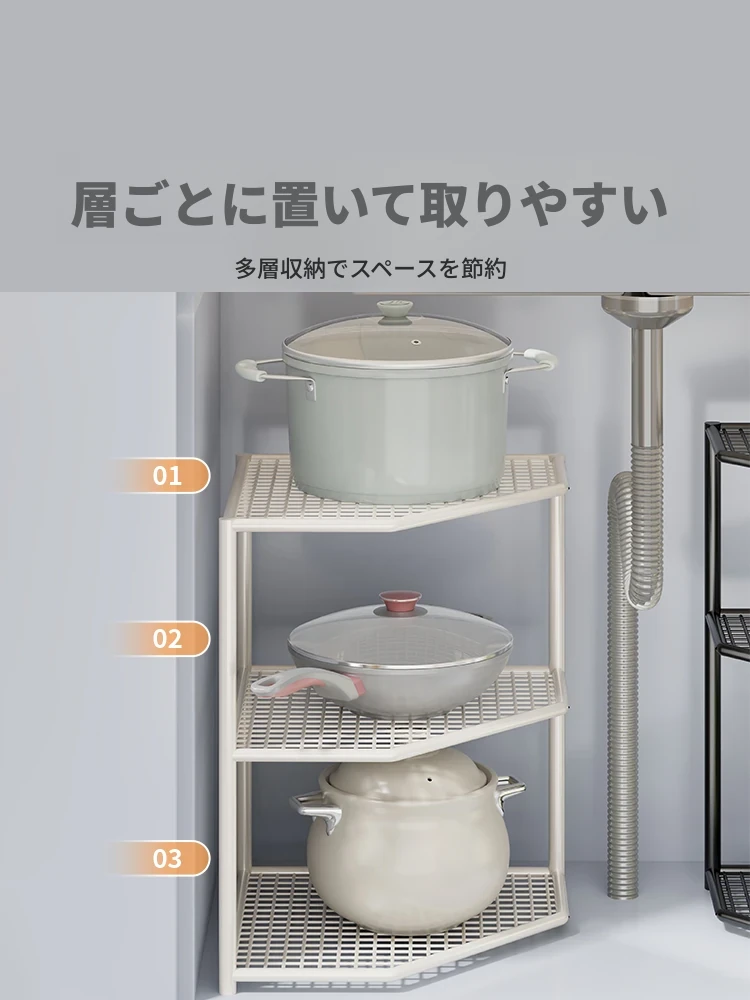 キッチンの隅を有効活用!多機能鍋収納ラック - スマートな下水槽整理で、調理器具をスッキリ整理!おしゃれで便利な棚で、クッキングスペースを広げましょう!