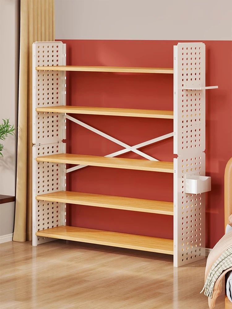 おしゃれなリビングにぴったり!子供向けの絵本をすっきり収納できるフロアシェルフ。壁にぴったり寄せられ、階層的な収納で使いやすさ抜群のシンプルな家庭用書棚です。
