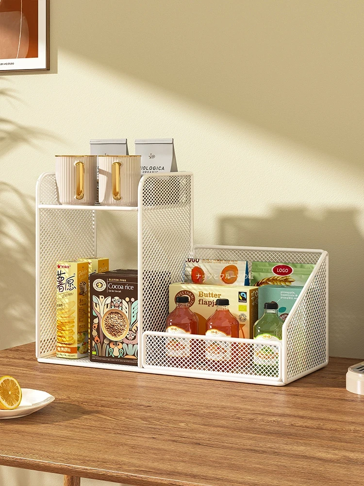 テーブル上の収納ラック|水杯やスナックをスッキリ整理!キッチンやダイニングにぴったりの調味料棚付き収納ラックで、すっきりとした空間を実現!