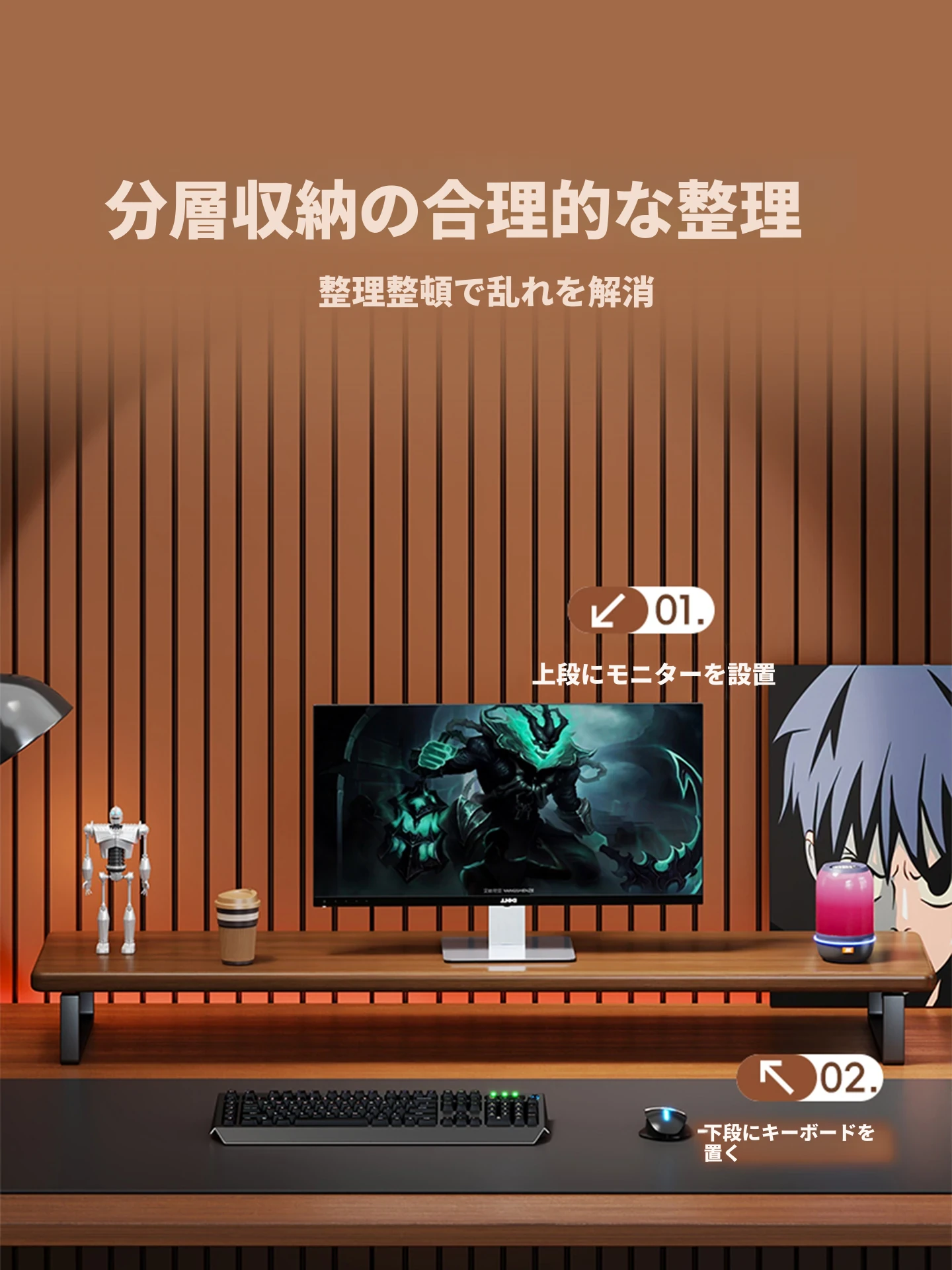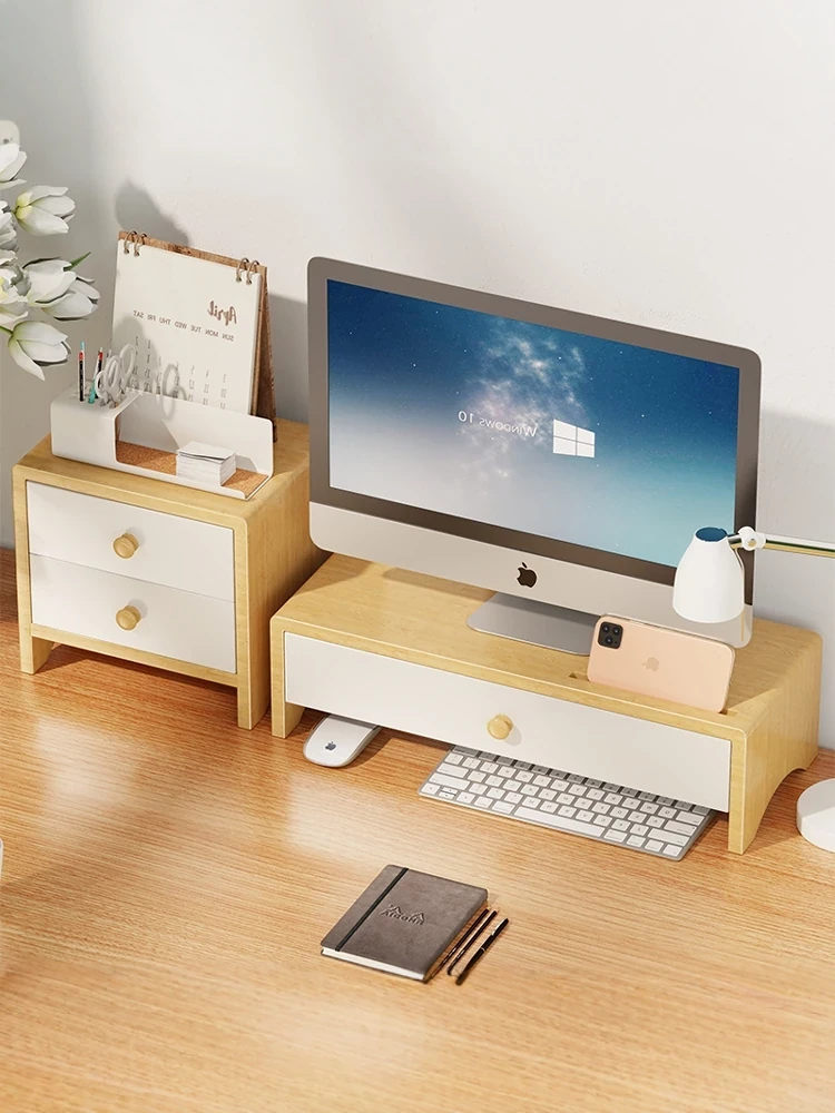 デスクトップ用モニター昇降スタンド&引き出し収納ボックス - 快適な作業環境を実現するデスク周りの整理整頓に最適!台式PCを簡単に持ち上げ、効率的なスペース活用をサポートします。