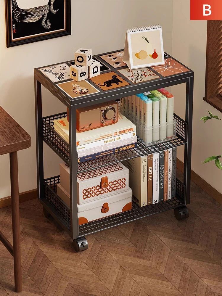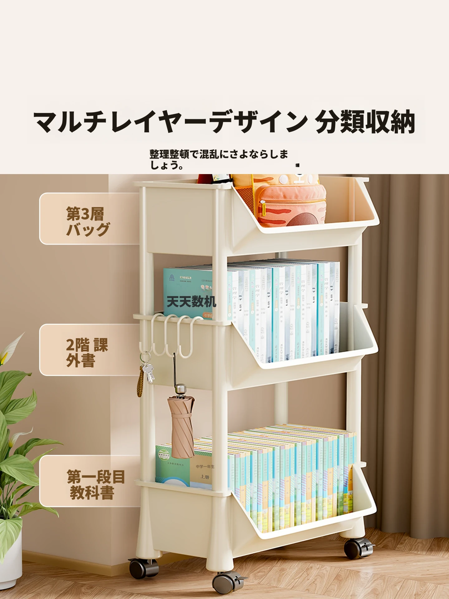 多層書籍収納キャスター付きワゴン - 学生教室や家庭に最適!おしゃれなデザインで本やお菓子、バックパックをスッキリ整理。省スペースで便利な収納棚、あなたの生活をもっと快適に!