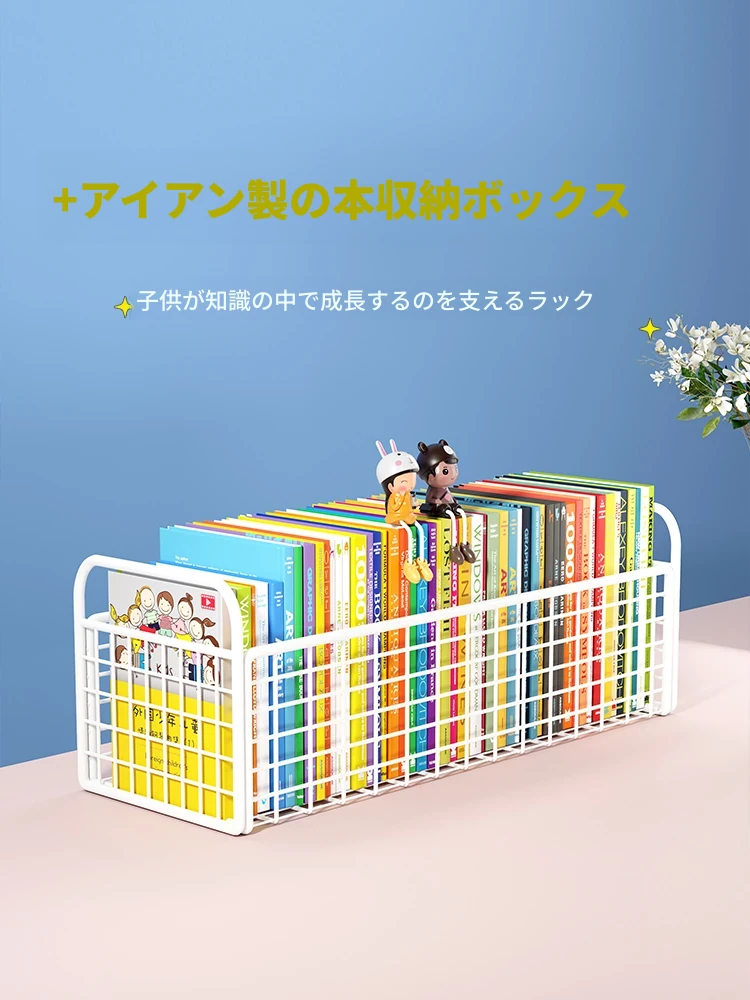 子供用ブックシェルフ - かわいいデザインの本収納ラック!床置きタイプで、絵本やおもちゃをスッキリ整理。お部屋を明るく彩るアイテムです!赤ちゃんの成長をサポートする、便利な収納バスケット付き!
