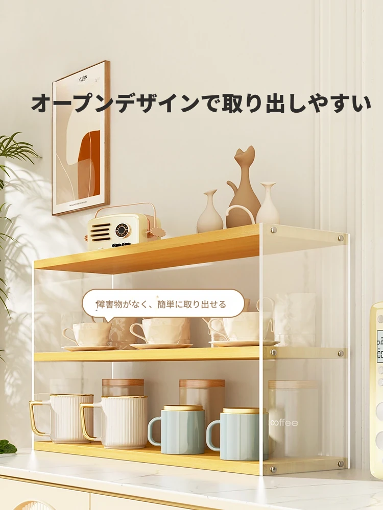 デスクトップ収納ラック アクリルカップホルダー ラグジュアリーな水杯スタンド 多層透明ティーカップ&ティーセットディスプレイ収納ラックで、おしゃれに整理整頓!