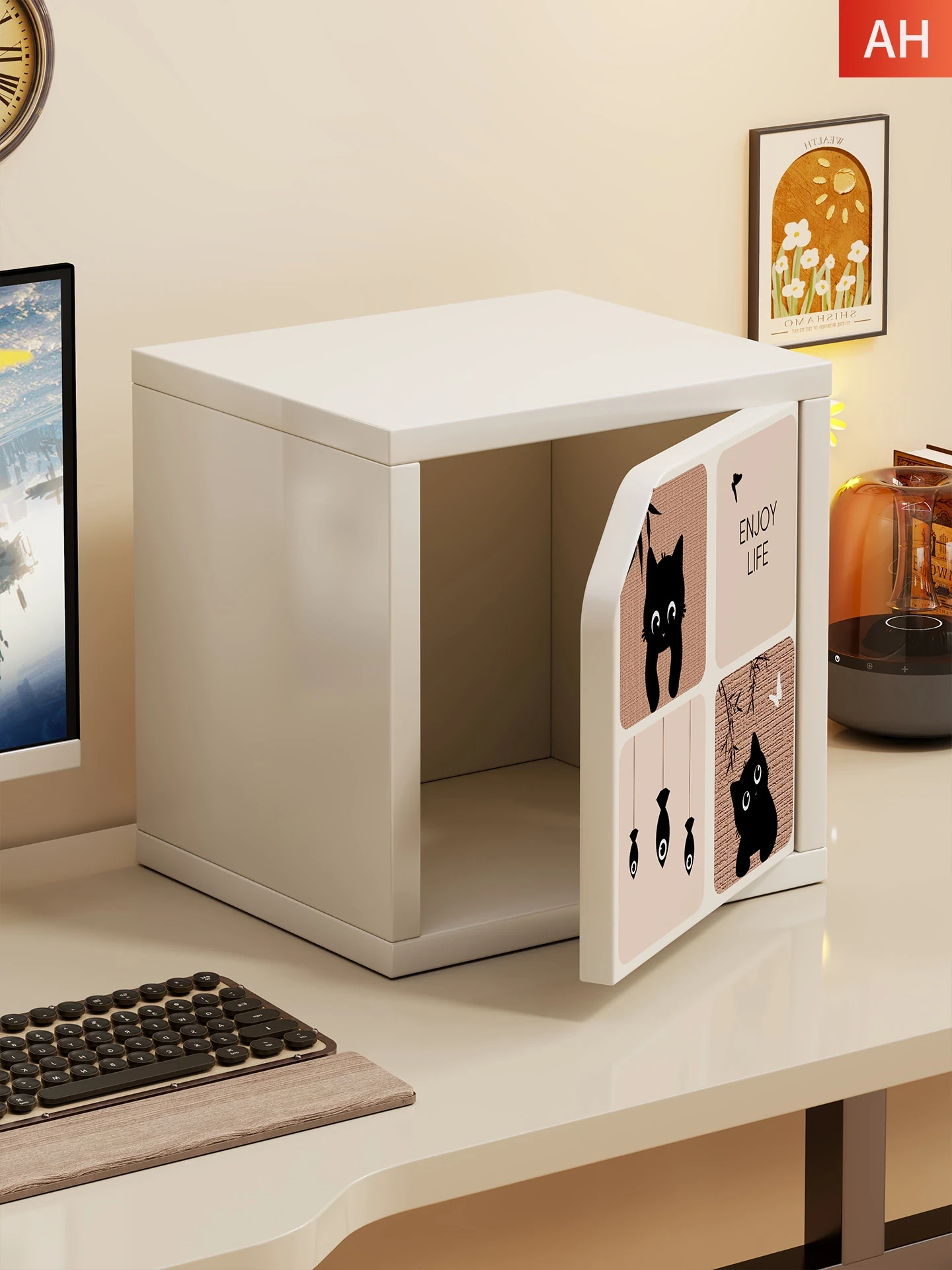 Compact Desk Organizer for Students - Stylish Mini Bookshelf with Cabinet Doors, Perfect for Home Use, Space-Saving Storage Solution for Your Desktop!