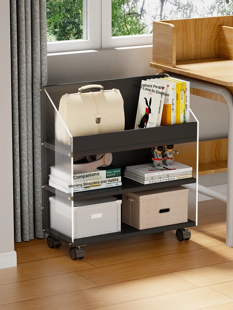 Rolling Storage Rack for Desks – Under-Desk Book Bag Organizer with Wheels, Space-Saving Cart for Easy Access to Books and Supplies
