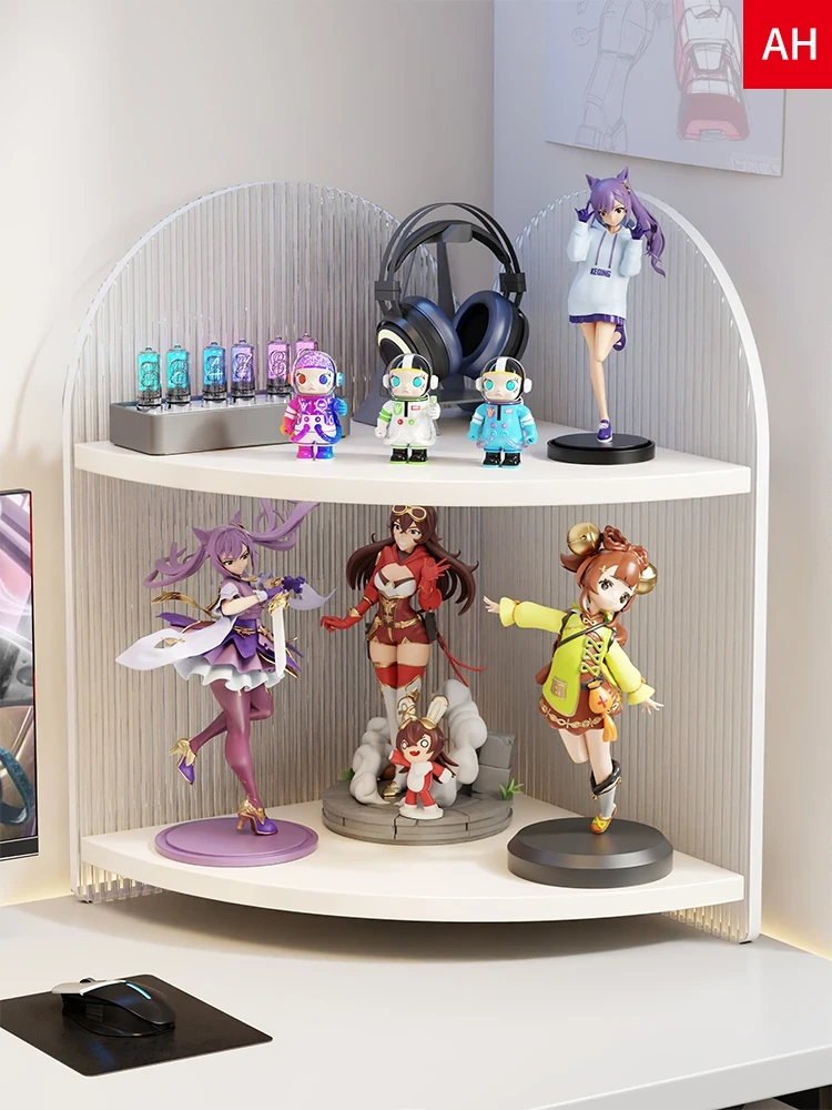 Corner Storage Rack - Multi-Layer Display Cabinet for Home Office, Perfect for Organizing Action Figures and Transforming Your Desk! Ideal Space-Saving Solution for a Clutter-Free Workspace.