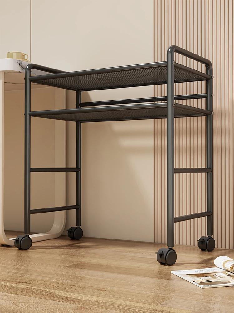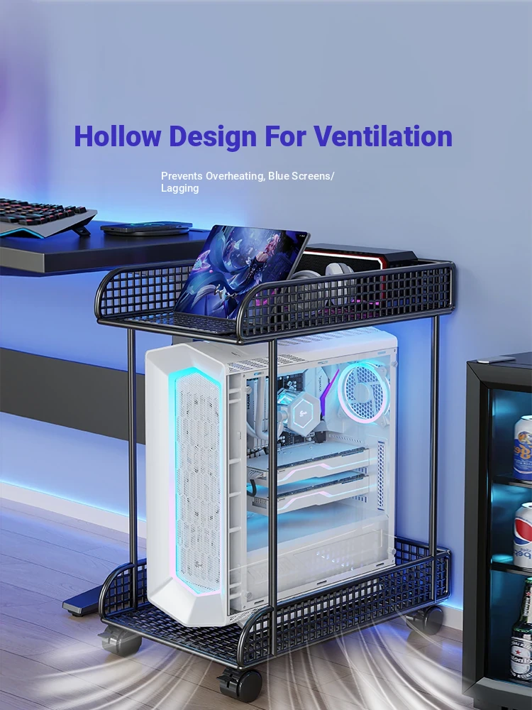 Dual-Layer Desktop Computer Stand with Wheels - Mobile Gaming PC Rack for Office Use, Space-Saving Floor Storage Solution