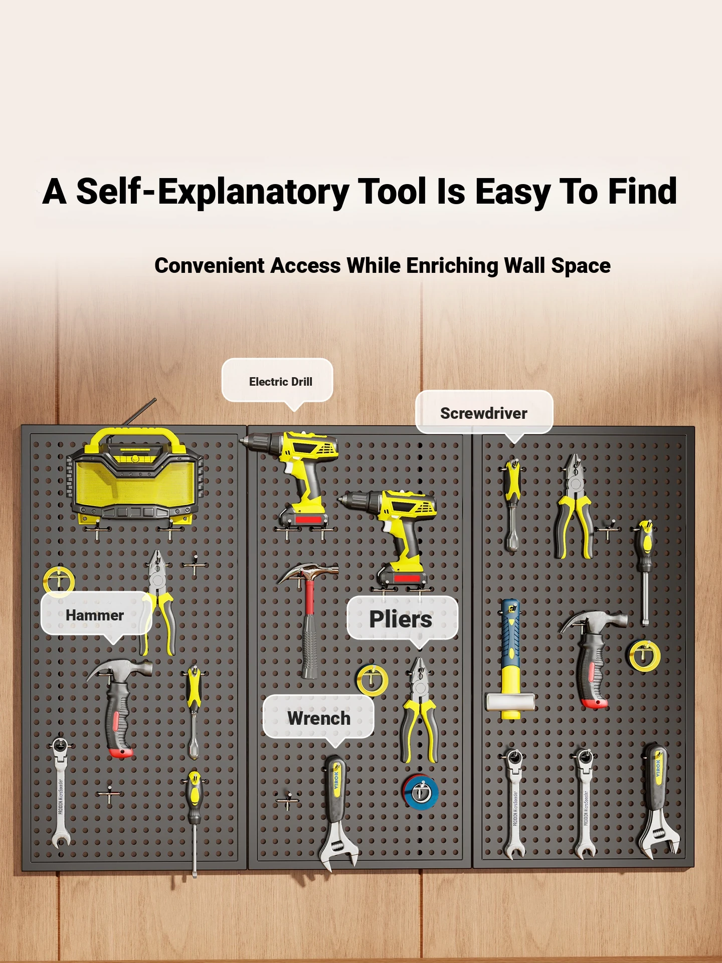 Stainless Steel Pegboard Tool Wall Organizer - Wall-Mounted Hardware Storage Rack with Punch Holes for Efficient Tool Management and Easy Access